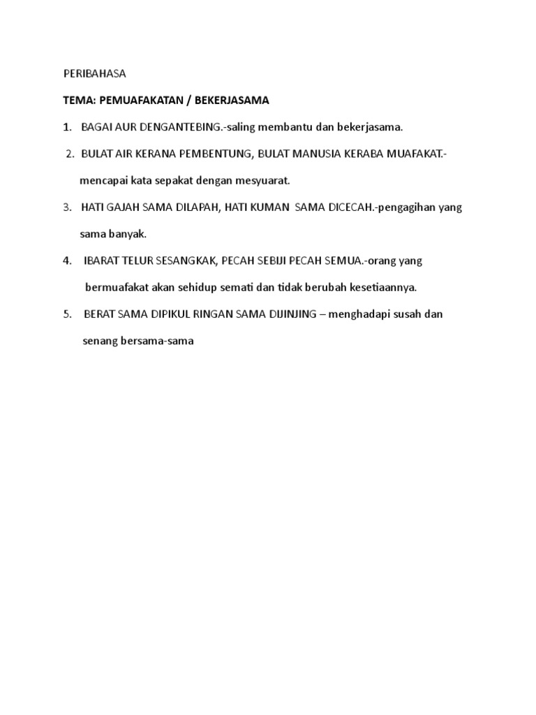 Yang penting adalah mereka ingin dan percaya bahwa mereka dapat membantu Anda. Sediakan payung sebelum hujan. Other Apps - May 29 2022 Peribahasa Berkaitan Kerjasama Dan Muafakat.